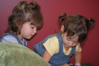 It looks like she really had fun at the pet store and a book store. She loves to find chairs that are just her size. And she is always fascinated by the presence of other children.